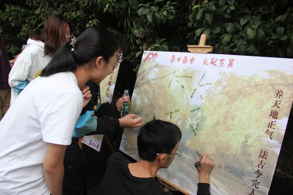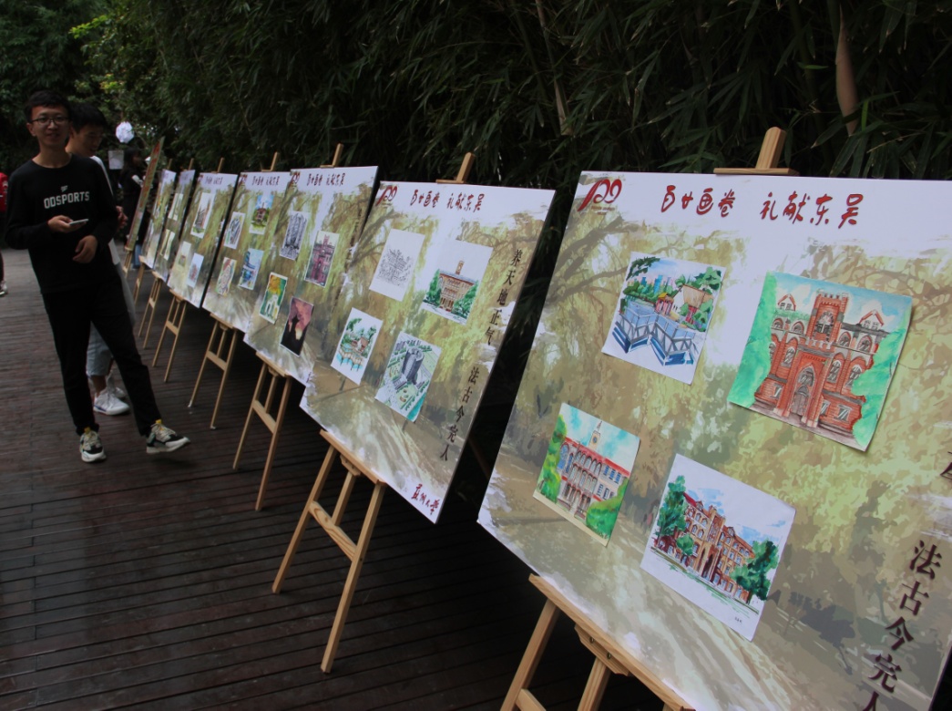双庆同贺,建筑学院的学子用画笔手绘苏大建筑,用巧思绘制创意纸扇拎袋,用匠心玩建筑、创设计搭模型,充分展示第二课堂成果,为双庆献礼。