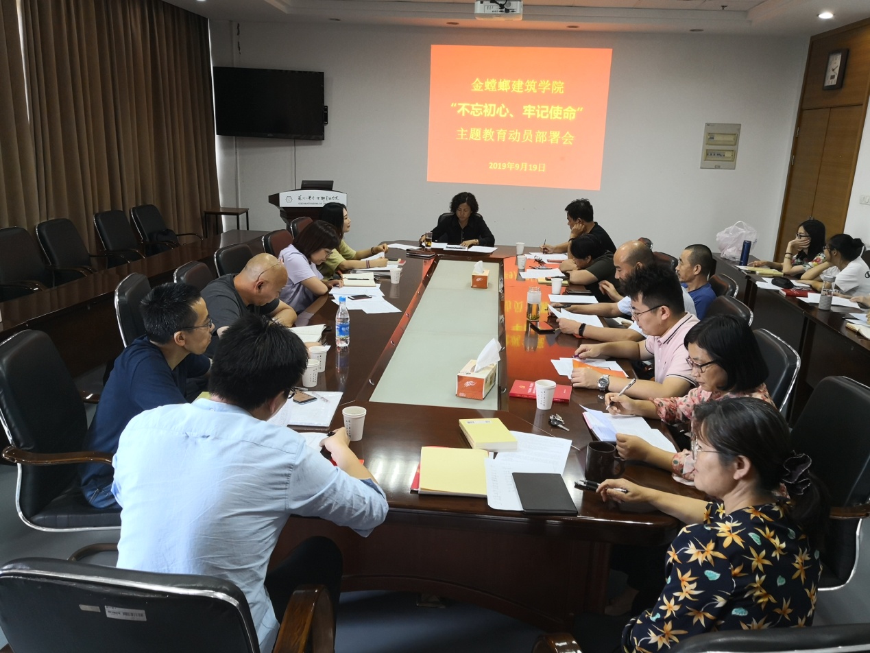 9月19日下午,金螳螂建筑学院“不忘初心、牢记使命”主题教育动员部署会在学院五楼会议室召开。学院党委书记陈国凤作动员讲话,学院党委委员、院领导班子成员、各系所中层干部、教师和学生党支部书记、委员出席会议。
