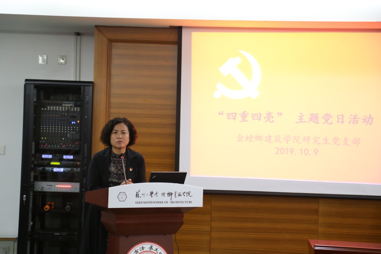 10月9日下午,金螳螂建筑学院研究生党支部组织党员前往独墅湖影剧院观看《我和我的祖国》爱国题材电影。观影结束后,在学院1207教室召开“不忘初心、牢记使命”主题教育以及“四重四亮”活动。研究生支部党员积极参加活动,学院党委书记陈国凤参加活动并作了讲话。