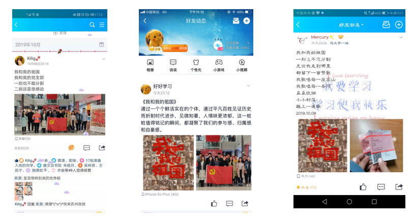 看时代变迁,激荡爱国深情:各支部自发组织观看电影《我和我的祖国》,影片以小人物见证大时代,通过《前夜》《相遇》《夺冠》等七个故事,展现了新中国成立70周年以来的若干重大事件和大时代洪流中普通人助力祖国繁荣富强的心路历程。两个半小时的观影过程中,生动的画面、朴实的情感,激发着每一位支部成员内心深处最强烈的爱国热情,使大家深刻感受只要小我融入大我,才能汇聚起实现中国梦的强大力量,更加深了大家对初心和使命的理解感悟。