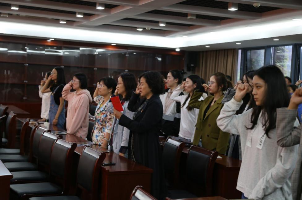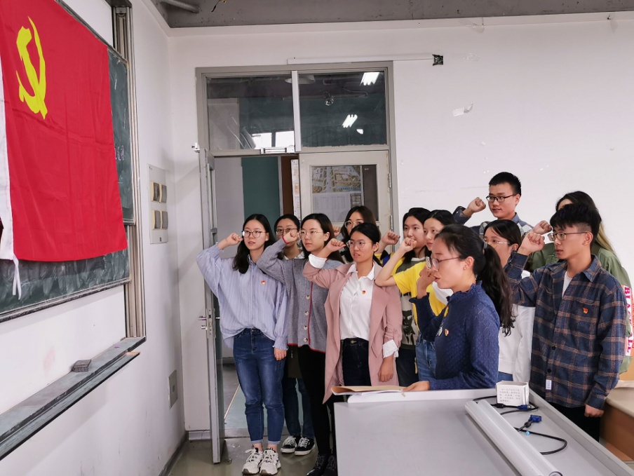集中宣誓,坚定初心使命:本科生党支部以及研究生党支部则在支部书记的带领下,庄严地在党旗下集中宣誓,铿锵有力的誓词是一次重要的仪式,更是一份庄重的承诺,牢记入党誓词,坚定信仰,汲取澎湃的进取激情和为党奋斗的精神力量,自觉在学习和工作中肩负起自己的责任与担当。其中,陈国凤书记带领研究生第一支部集中宣誓,并引导学生党员需要带着问题去解决问题,要求学生党员积极参加党建活动,运用党的创新理论指导实践,在学习实践中,要做到党员亮身份、服务亮承诺、工作亮标准、担当亮作为,确保主题教育不走过场、取得实效。行政党支部的党员陈驰同志预产期在即,不仅坚持与会学习和分享,还和其他党员同志一起,庄重地在党旗下响亮地再次宣誓,体现了共产党人的坚守与担当。