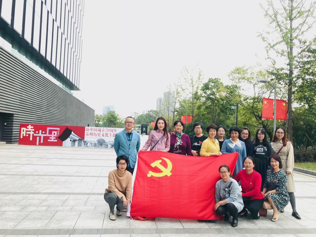 情景教育,感悟初心力量:学院师生党支部结合自身实际和专业走进不同的时空,在实地的体验中,重新回味初心,感悟当下,展望未来。建筑与规划党支部全体党员赴苏州广电现代传媒广场以建筑专业老师的身份考察了2000平米演播大厅,随后参观《新中国成立70周年苏州历史文化主题展》,共同穿越时光隧道,走进苏州的“时光里”,感受苏州历史文脉的传承。