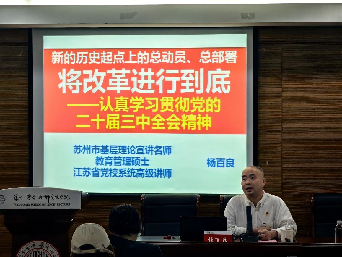 现场邀请江苏省党校系统高级讲师、苏州市基层理论宣讲名师杨白良老师做授课嘉宾,学院分党校副校长、院党委副书记成龙,分党校指导老师姜珊老师出席活动,分党校各部门工作人员以及下半年入党积极分子、发展对象、预备党员全体参加。