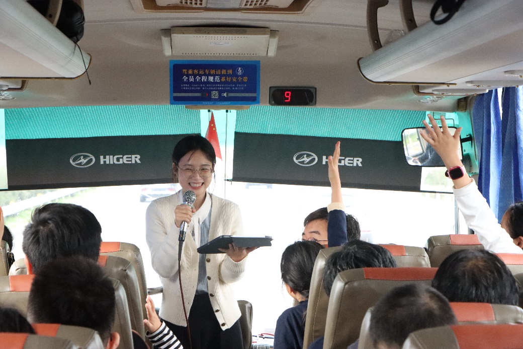 在前往南京途中,师生党员通过参与红色歌曲填词、四史知识问答、党史事件猜图等互动环节,围绕我国新民主主义革命、社会主义革命和建设、改革开放与社会主义现代化建设以及中国特色社会主义新时代这四个发展阶段,有针对性地学习了中国共产党党史、新中国史、改革开放史、社会主义发展史。师生党员共同回顾了中国共产党百年奋斗征程,深刻领会了新时期共产党员所肩负的历史使命。