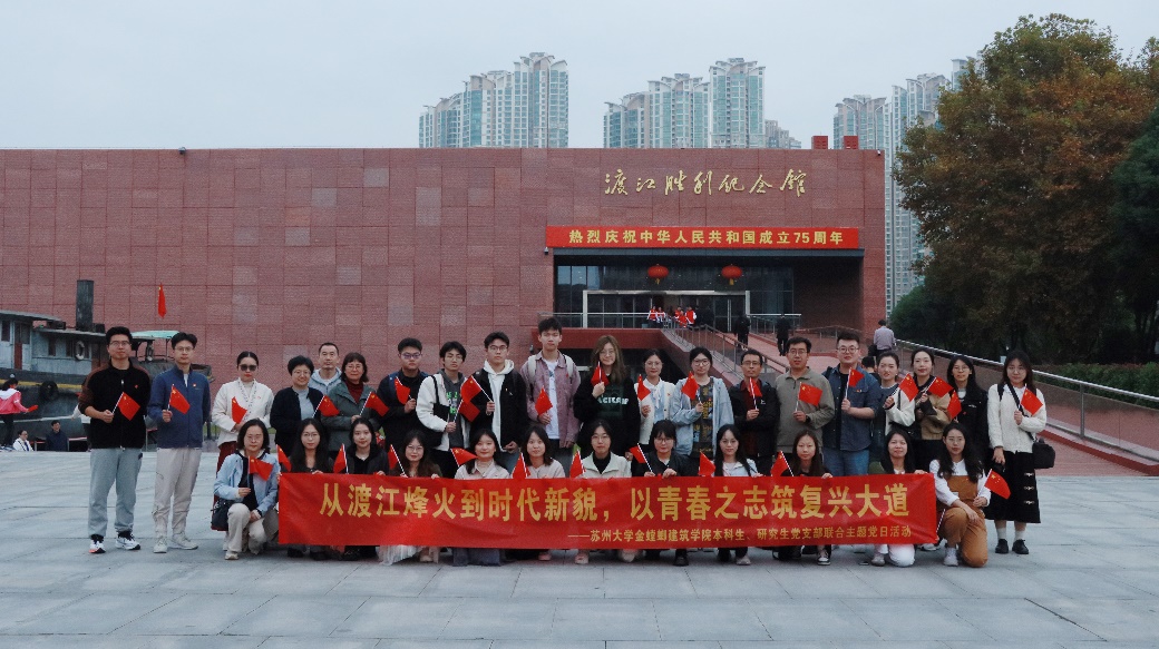 为深入学习贯彻习近平新时代中国特色社会主义思想,全面贯彻落实党的二十大及二中、三中全会精神,庆祝新中国成立75周年,重温中国共产党团结带领各族人民为国家富强、人民幸福而不懈奋斗的光辉历程,金螳螂建筑学院本科生、研究生党支部于2024年11月16日开展“从渡江烽火到时代新貌,以青春之志筑复兴大道”主题党日活动。40名师生党员参观了南京渡江胜利纪念馆、南京长江大桥以及南京城市规划展览馆,深切感受新中国诞生的光辉历程和党建引领下现代化发展的时代新貌。
