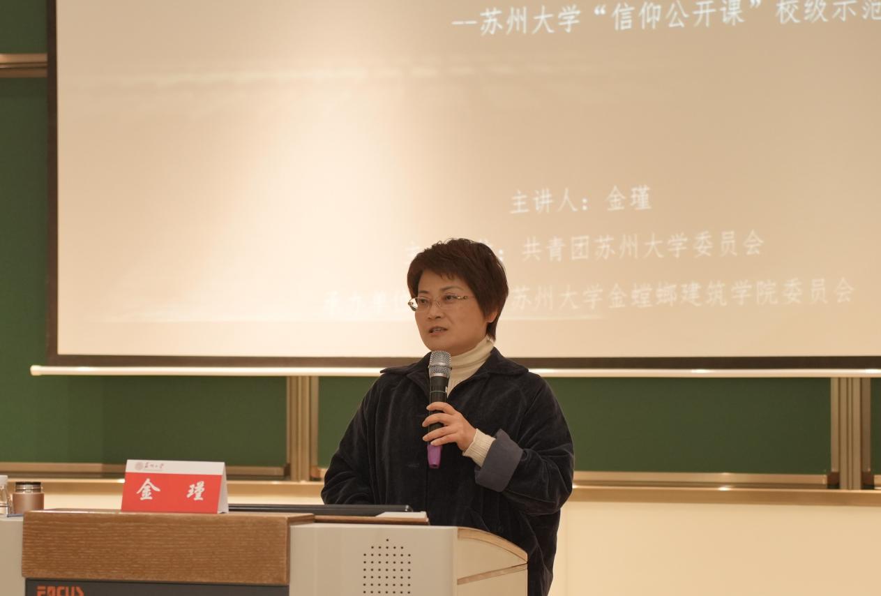 11月19日,我院在独墅湖校区金螳螂建筑学院学术交流中心举行“金砖里的匠心和智慧”苏州大学“信仰公开课”校级示范课(素养公开课)。国家级非物质文化遗产“苏州御窑金砖制作技艺”第六代传承人金瑾应邀授课。学院党委副书记黄远丰出席本次活动。2025年苏州大学“青年马克思主义者培养工程”秋季班学员、金螳螂建筑学院“青年马克思主义者培养工程”学员、金螳螂建筑学院师生代表参加活动。本次活动由院团委书记甘露主持。