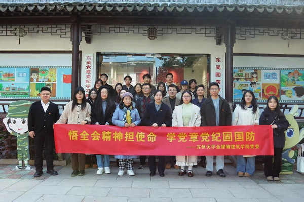 为深入学习贯彻党的二十届四中全会精神,坚定不移贯彻总体国家安全观,切实增强党员的国防安全意识与使命担当,2025年12月8日,金螳螂建筑学院党委委员、各党支部书记及委员赴苏州东吴党章党纪学习教育基地和东吴国防教育基地,开展“悟全会精神担使命,学党章党纪固国防”主题党日活动。