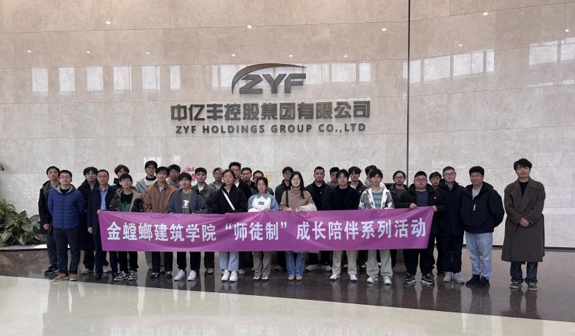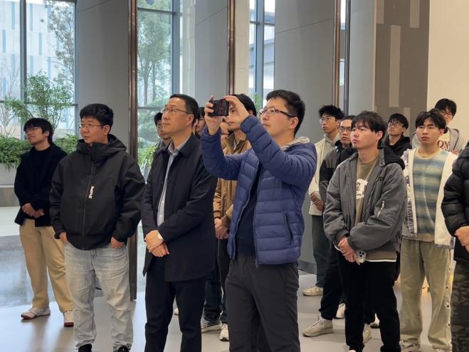 活动最后,全体师生在中亿丰大厅合影留念。此次交流活动实现了从建筑产业互联网平台的动态演示到智能施工装备的实景观摩,从重点工程案例的细节剖析到结合课程的深度提问,同学们跳出课本框架,将课程的抽象理论转化为可感知的行业实践,对数智时代建筑学专业的发展趋势有了更清晰的认知。同时,活动打破了高校与企业的信息壁垒,学院的学术视角与企业的实践经验深度交汇,不仅搭建起从课堂到产业的认知桥梁,助力学生明确学习方向与职业定位,也为今后校企间在课程共建、人才协同培养等方面的进一步合作奠定了实践基础。