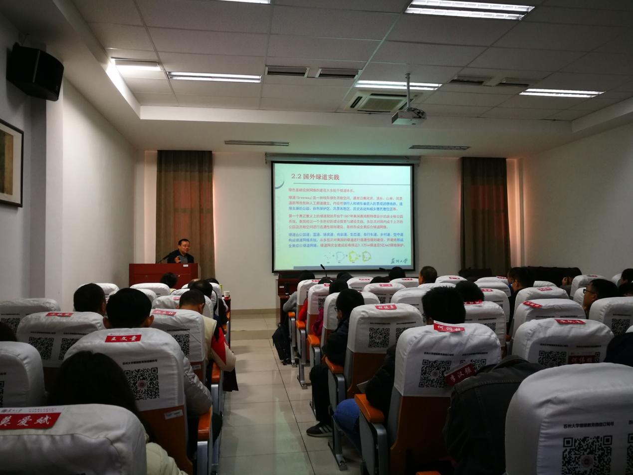 开班典礼结束后,由苏州大学金螳螂建筑学院翟俊教授为大家带来了《中外优秀景观案例的解读》的精彩讲座,正式拉开了此次培训班学习的序幕。本次培训在课程设置上围绕学员需求,具有较强的针对性,既有《乡土景观设计》、《“城市=公园”的景观城市之路》、《现代城市景观可持续发展研究》、《园林绿化工程建设监督与质量管理》、《城市园林绿地的综合功能与设计原则》等专题讲座,并聘请了具有丰富教学和实践经验的知名教授和专家授课,授课老师讲课风趣幽默、案例丰富、讲解透彻,深受学员们喜爱;还赴苏州艺圃、中衡集团、苏州耦园现场交流学习,邀请了中衡设计集团股份有限公司景观设计院院长吴磊及姚云霞老师为学员现场授课。