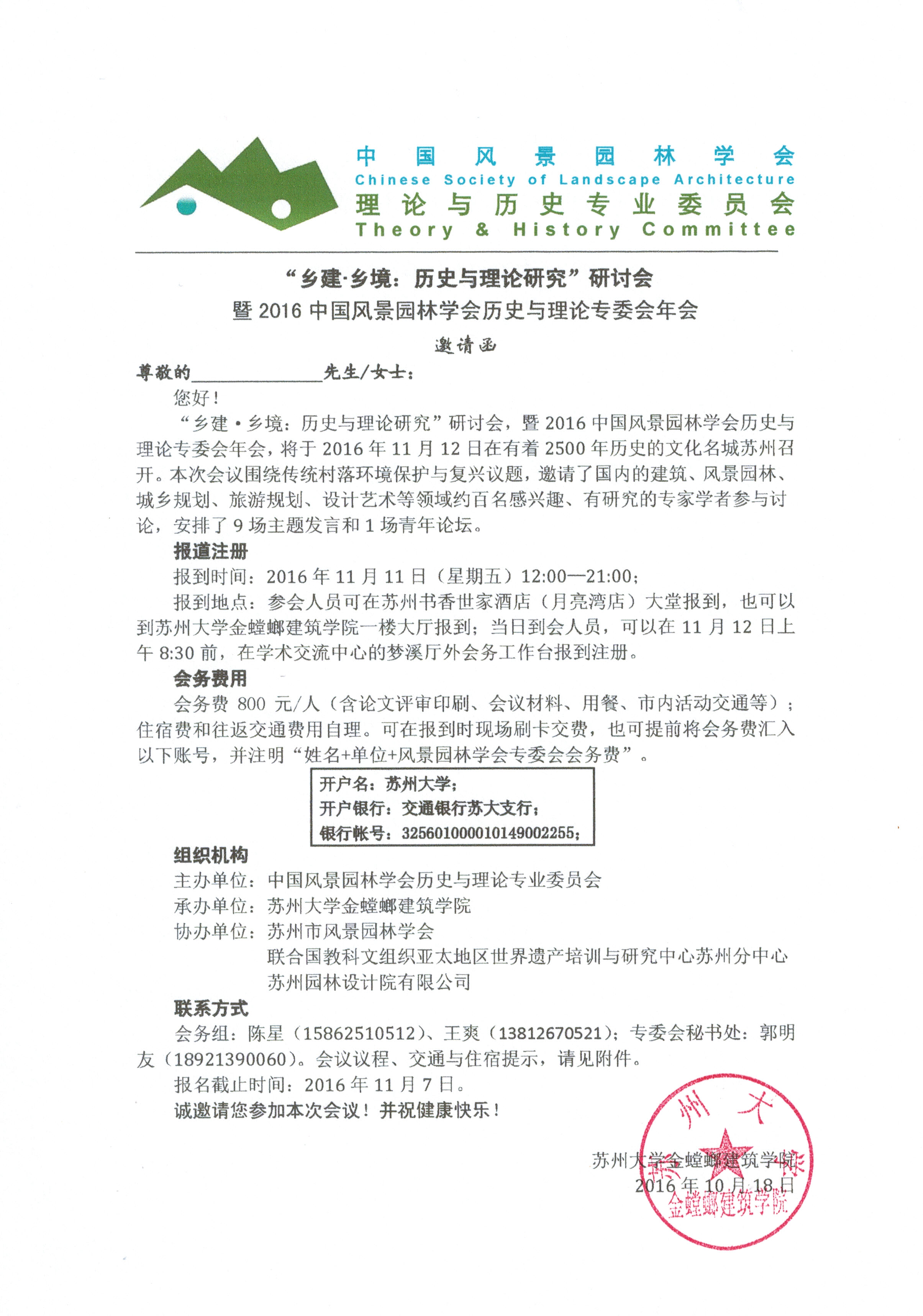 “乡建•乡境:历史与理论研究”研讨会暨2016中国风景园林学会历史与理论专委会年会邀请函