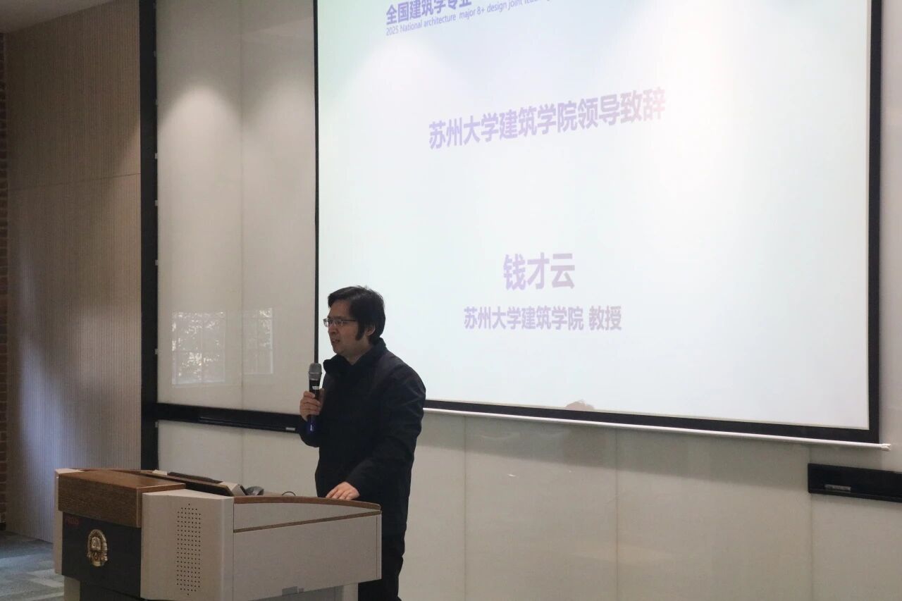 “8+”联合设计教学—名城设计专题终期答辩开幕式在建筑学院学术交流中心七彩厅举行。开幕式由苏州大学建筑学院副院长夏正伟教授主持,苏州市古城保护和数字科技镇长团代表孙俊芳教授、苏州大学建筑学院院长钱才云教授上台致辞,“8+”高校导师代表同济大学建筑与城市规划学院教授陈泳上台致辞。苏州市姑苏区委组织部、区住建委、资规姑苏分局等相关负责同志参加了开幕式。