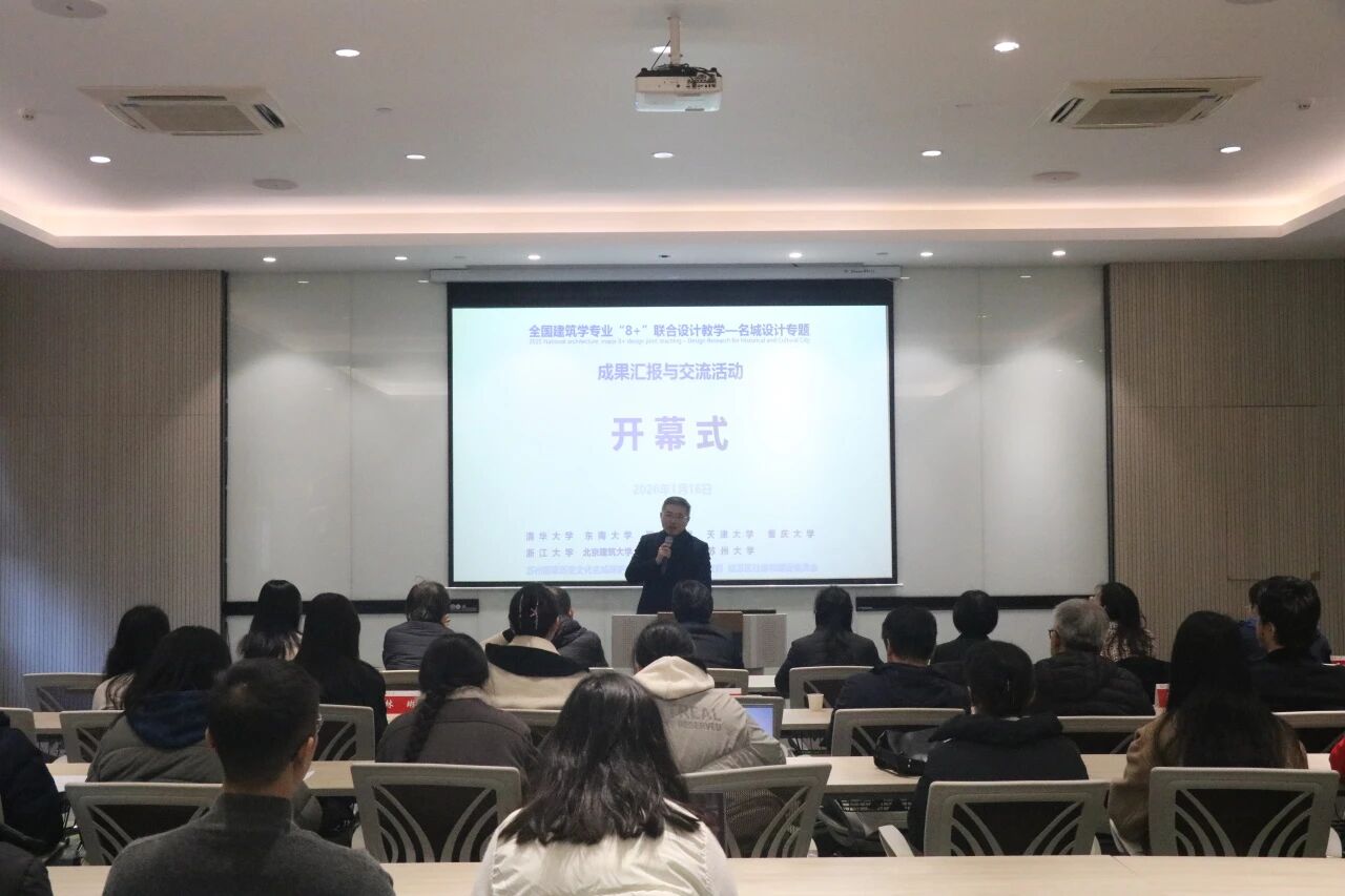近日,由姑苏区住房和建设委员会与苏州大学建筑学院联合主办的全国建筑学专业“8+”联合设计教学——名城设计专题成果汇报与交流活动在我院顺利举行。来自清华大学、东南大学、同济大学、天津大学、重庆大学、浙江大学、北京建筑大学、中央美术学院、苏州大学共9所高校近50名同学向大家展示了历时四个月所取得的设计成果。