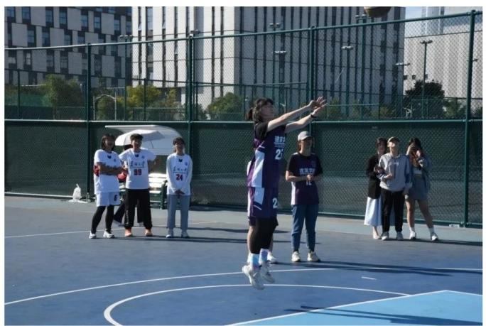 随着赛程的推进,第二场比赛由女生队员进行的投篮比赛,她们朝气蓬勃,刚柔相济,使篮球在空中划过优美的弧线,稳稳地落入篮筐,每位女生都用她们刻苦训练的成果为学院争取到了更多的分数。