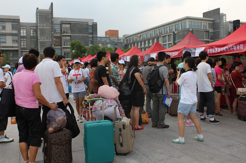 很多新生携带的行李很多,迎新志愿者尽可能的帮助他们运送行李至宿舍。在宿舍,迎新志愿者为学生和家长答疑解惑,并提醒新生提高警惕、开学初期防骗防盗。在报到后,很多同学都在找学院在暑假期间创建的2012级新生QQ群里聊得来的同学。新生们在暑假里不管有什么问题都可以问群里的老师和学长,他们都会耐心解答。通过QQ群不仅让同学之间尽早增加凝聚力,还拉近了新生之间以及和老师之间的距离。