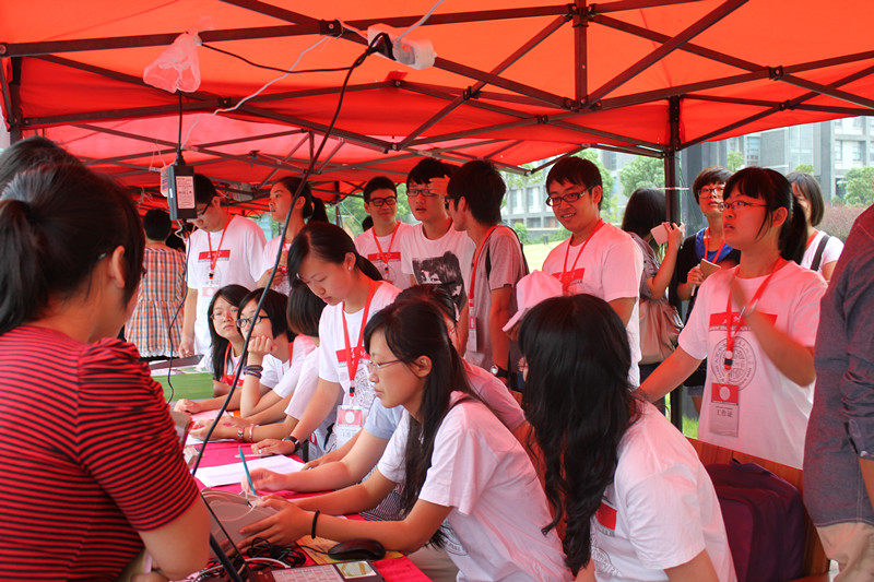 8月28日,我院迎新志愿者在早上6点前到达各自岗位,部署好一切工作后,一批批新生涌入校园,我院2012级新生入学报到工作就此拉开帷幕。一辆辆满载着新生的校车驶入苏州大学独墅湖校区,车门一打开,就看见多名志愿者手举各学院的指示牌,努力帮助新生第一时间各自找到报到的院系。