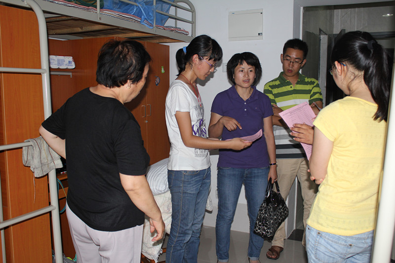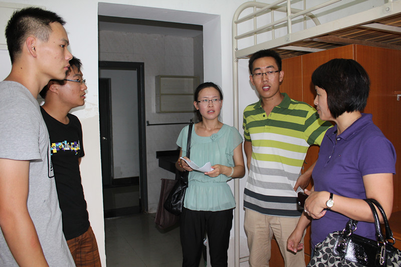 下午,在大部分新生都已报到并呆在宿舍后,院党委副书记、副院长陈国凤,辅导员成龙,12级班主任蔡梦婷以及部分迎新志愿者们到各个新生的宿舍走访慰问,并叮嘱新生们在近期要提高警惕,开学初期校园内人员混杂,不要轻信任何涉及金钱的推销。在走访中,我院老师还同新生一起抓到了一名以兜售电话卡名义骗学生钱财的可疑人员,并交予学校保卫科。