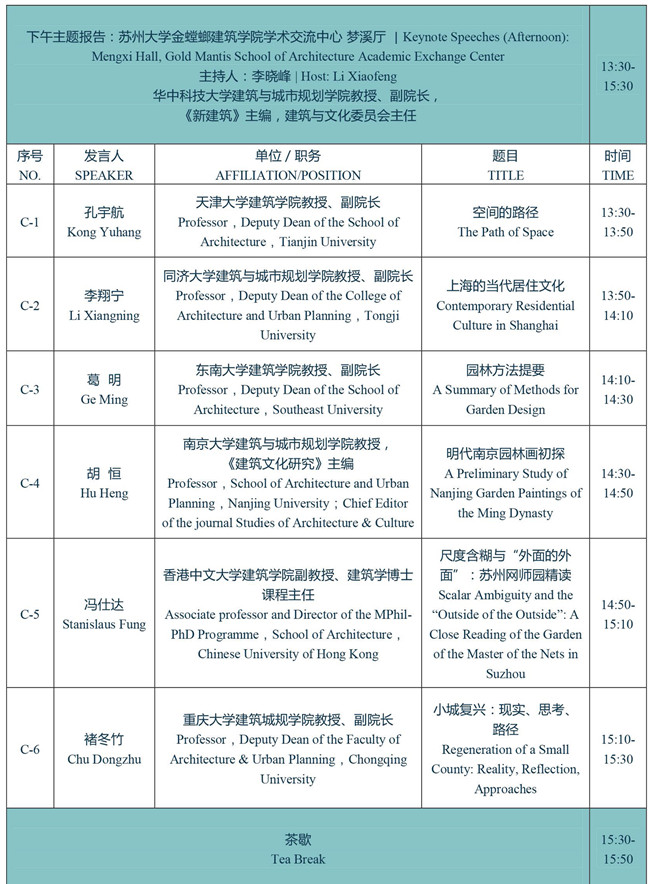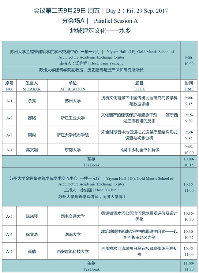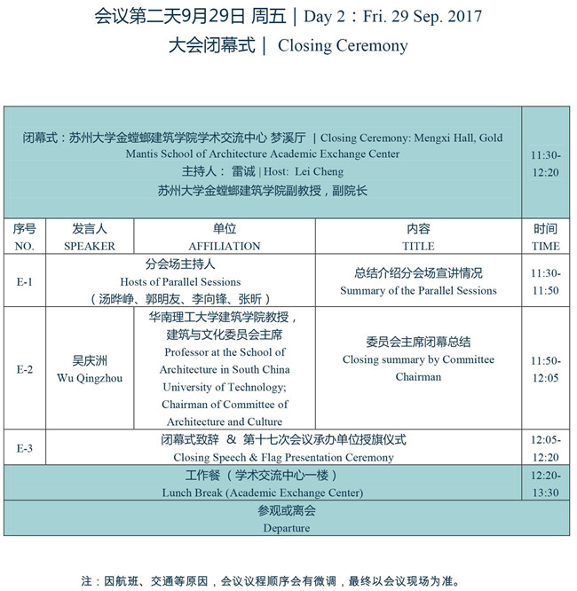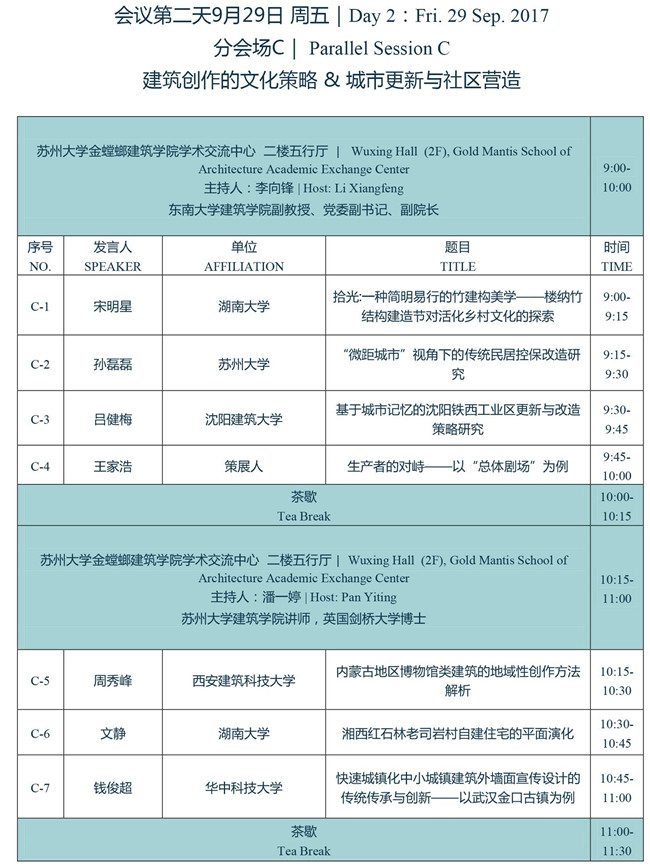 2017第十六次建筑与文化国际学术讨论会会议日程、议程安排