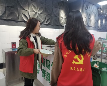 3 月中旬,我院青年志愿者协会招募了28名志愿者在独墅湖校区第五食堂开展“光盘行动”志愿服务活动。志愿者们两人一组在午饭、晚饭两个时间段在食堂的餐具回收处,提醒同学们保持桌面卫生,按类别将勺子、筷子、垃圾等有条不紊的投放在不同的投放口处,一方面保持了食堂干净卫生的用餐环境,另一方面也减轻了在用餐高峰期食堂工作人员回收清理餐具的工作负担,同时也宣传了节约环保的理念,得到了工作人员以及师生的一致好评。