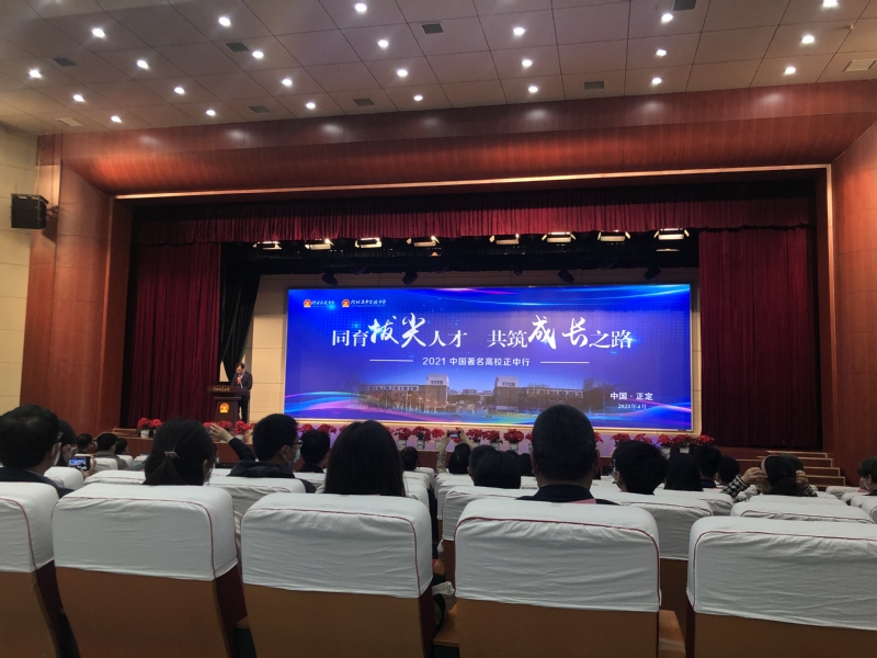 高质量的生源是学校人才培养的根本保证,招生宣传工作是提高生源质量的重要途径。为进一步提升我校生源质量,吸引更多的优秀学子报考苏州大学,4月16-18日,我校受邀参加河北省正定中学“同育拔尖人才 共筑成长之路——2021著名高校正中行”活动。河北招生组金螳螂建筑学院综合办公室主任陈星、院团委副书记甘露前往河北省正定中学开展招生宣传工作。