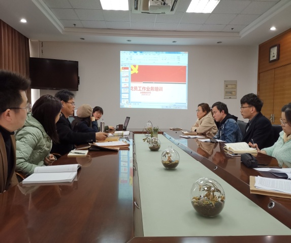 会上,学院组织人事秘书张国英老师作了发展党员工作业务培训,她分别从发展党员工作的重要意义 、发展党员程序规定( 40个步骤)、发展党员归档要求、发展党员常见问题等进行详细解读与辅导。她还对《如何规范党费收缴使用管理》作了解读与说明。