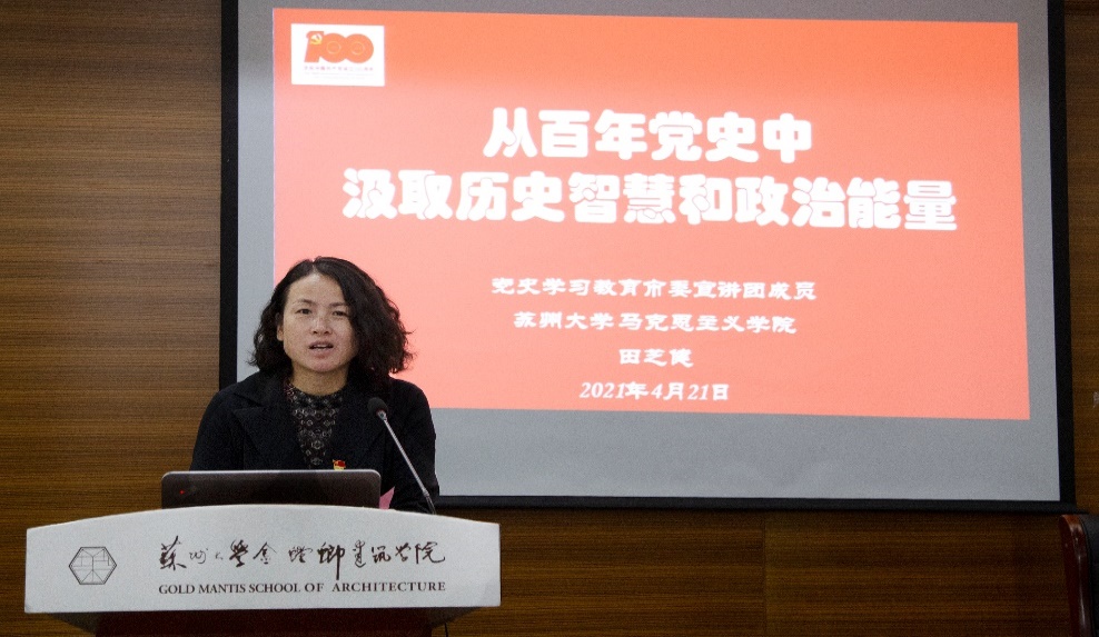 2021年4月21日下午,马克思主义学院院长田芝健教授应邀来学院作题为“从百年党史汲取历史智慧和政治能量”党史学习教育专题报告。学院党委书记陈国凤、学院院长吴永发、党委副书记兼副院长薛曦、党委委员、副院长王杰祥,专职组织员、各支部委员、师生党员代表及第65期党的基本知识培训班学员、第44期预备党员培训学员在C01-1207会议室出席参加。报告由党委书记陈国凤主持。